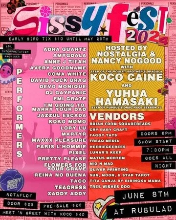 Sissy Fest 2024 Puck's Playground Astra Lumina Let's Watch a Movie Butch 4 Hire Fundrager Sissy Fest 2023 Stranger Things: The Experience Resumè
