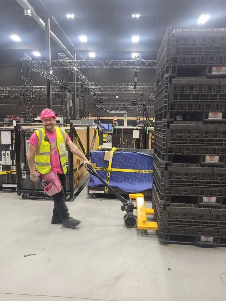from 2021-2023, mac worked in several capacities on a touring production of stranger things: the experience. they started as a board operator and ended two years later as the technical director on site.
